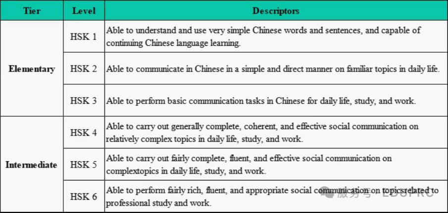 Квалификационные дескрипторы нового HSK (уровни 1-6)